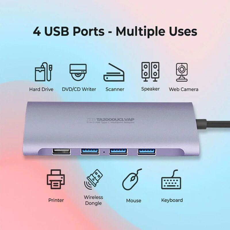 ZEB-TA2000UCLVAP is an 11 in 1 Type C Multiport Adapter