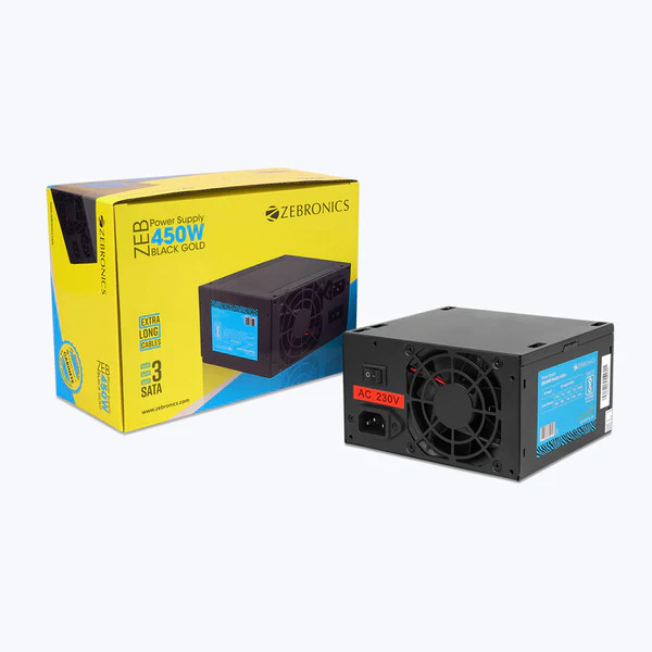Zebronics Power Supply Computer SMPS Zeb 450W (Black Gold)