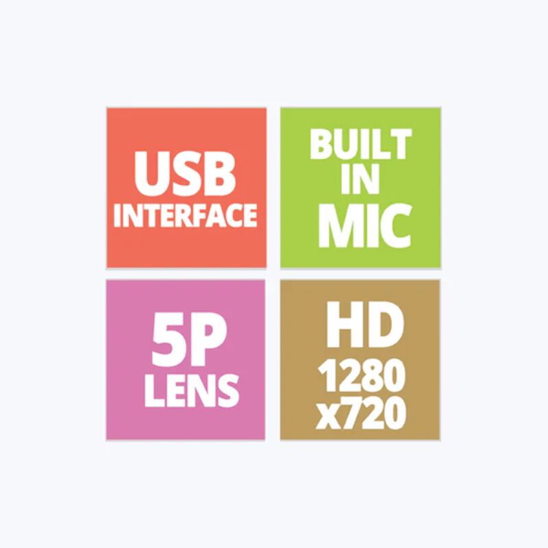 A 5P lens with a resolution of 1280×720. The web camera also comes with