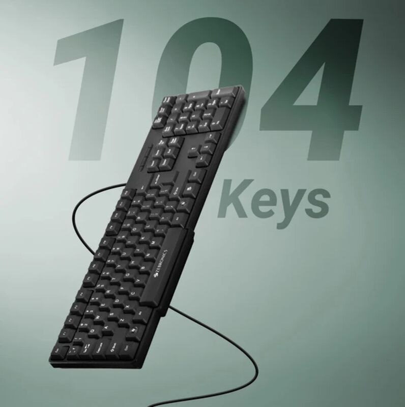 Zebronics K20 is a standard wired USB keyboard with 104 keys .