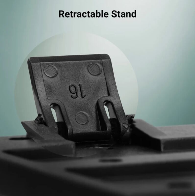 This keyboard comes with a retractable stand with a dedicated rupee key.