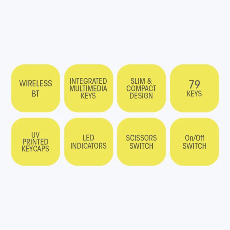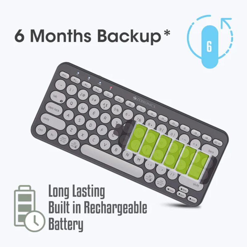 ZEB-K5000MW is a 79 keys wireless BT keyboard, featuring an ergonomic design with scissors keys to dampen the typing sound, so it’s quieter to type. It has a type C interface for charging and indicates the charging, full charge, and low battery with the dedicated LED indicator. It comes with 6 months* of backup time depending on the usage of the device. Pair your wireless keyboard to your phone, laptop, or tablet and connect instantly without the hassles of re-pairing individually.