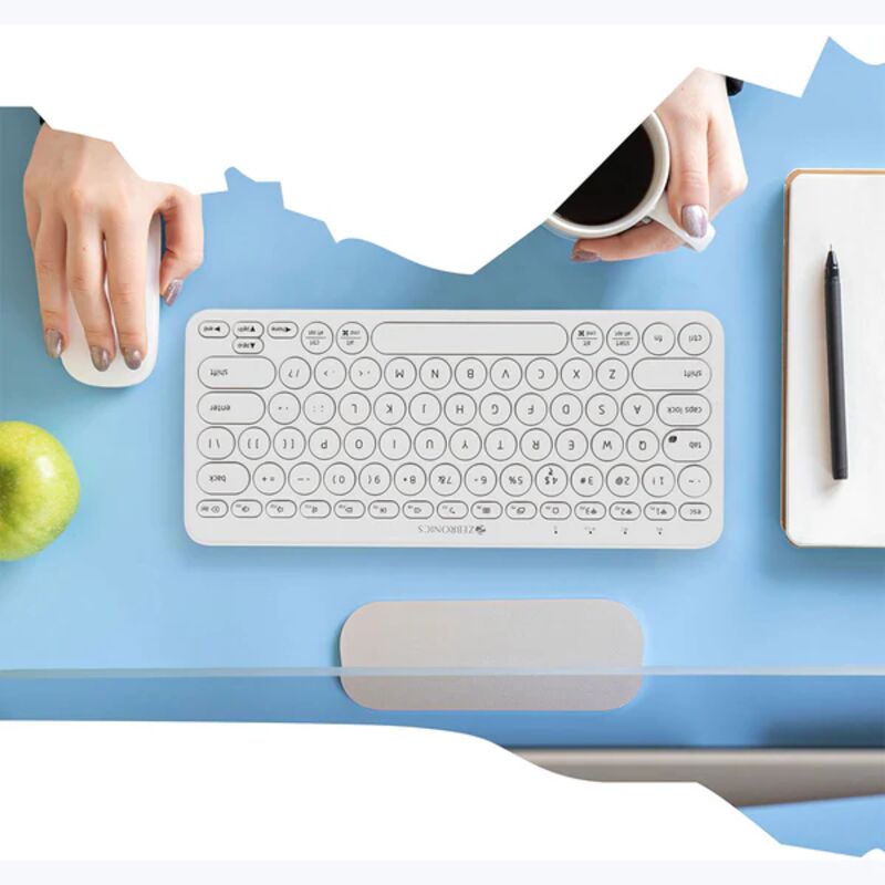 Get a clutter-free desk with the ZEB-K5000MW wireless BT keyboard, featuring an ergonomic design with scissors keys to dampen the typing sound, so it’s quieter to type.